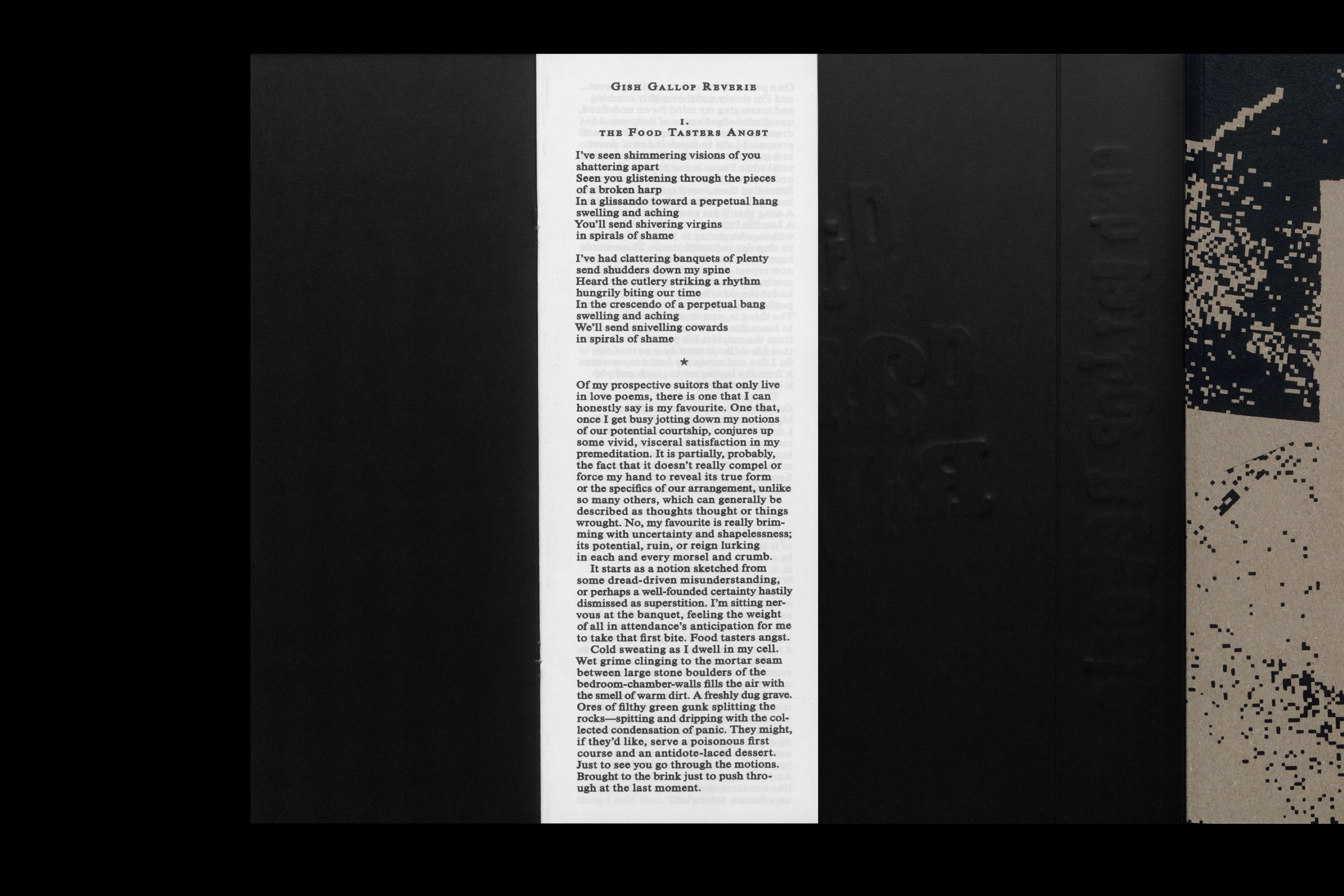 The Gish Gallop is a rhetorical technique that floods an opponent with excessive arguments, regardless of their merit. The soapbox, once a wooden crate for transporting goods, became a makeshift stage for public speech. Through the figure of the troubadour, Gish Gallop Reverie weaves together soapbox speeches, satirical labor ballads, and themes of love, chivalry, and unrequited devotion, scat-tered across fragmented narratives that blur the line between folklore and folk-fact. The mural, made of printed A4 sheets wheat-pasted onto the wall, reveals faint figures across a panoramic field: tangled relationships and shifting interpretations, a comprehensive political cartoon, a medieval morality diagram, receding and appearing from the dark digital raster.