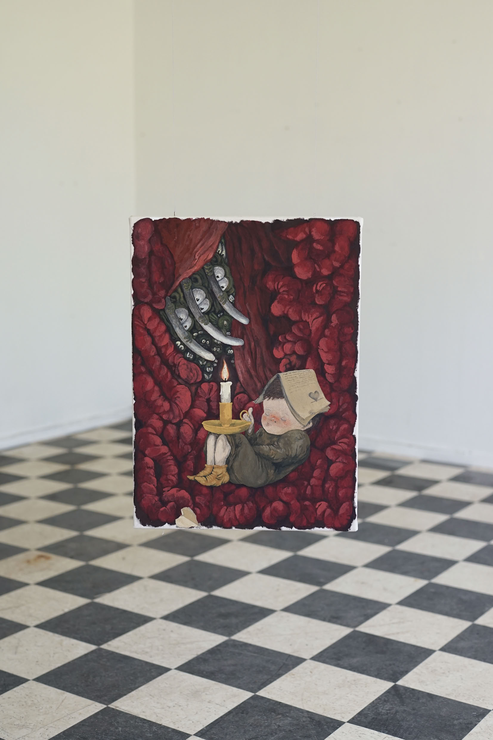 double sided diptych, two 64x46, gouache, charcoal, watercolour on canvas